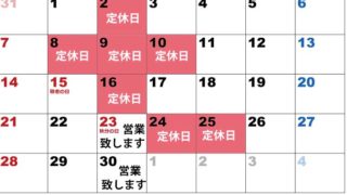 営業日お知らせ2025年9月1日2025年9月本店定休日のお知らせ